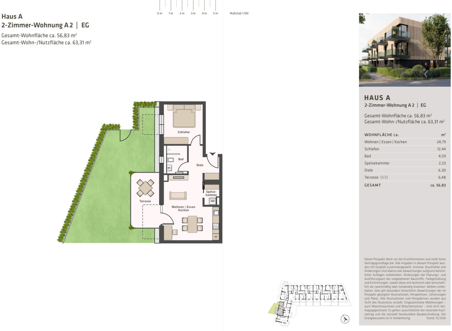 Die Wohnungen und integrierten Stadthäuser haben zwischen 33 bis 142 m² Wohnfläche, werden teilweise als Maisonettewohnungen mit eigenem Hobbykeller ausgeführt. Die integrierten Häuser erhalten extensiv begrünte Flachdächer mit einer Photovoltaikanlage. Zusätzlich werden auf dem Grundstück Besucher- und Fahrrad-Stellplätze errichtet.