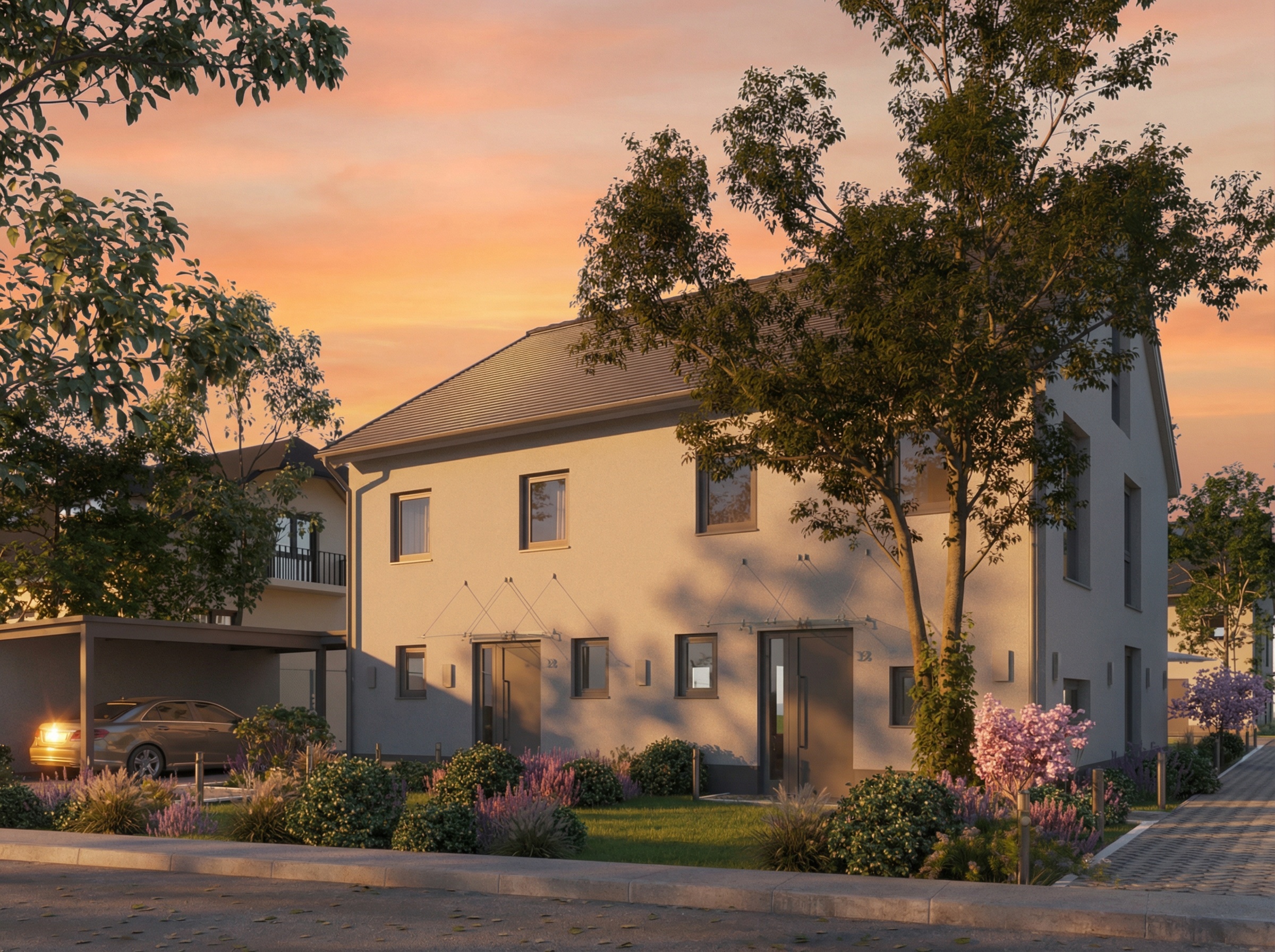 4 neu errichtete Familienhäuser in zukunftsstarker Bauweise – als Doppelhaushälften gestaltet